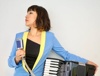 Switching to the accordion—a portable instrument with nostalgic charm—she established his unique genre, Bohemian Jazz Soul, blending R&B and Soul foundations with elements of Jazz, Latin, and Spanish music. As a songwriter and composer, she provides works not only for his own projects but also for numerous shops and companies. She has participated in many TV and radio commercials and sound logo singing projects.